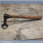 This is one of our recently sold items. Vintage Unusual Shaped Planishing Hammer with wide head with no counter balance which I presume helps with small tapping motions. The hammer has a very smooth polished face which is mirror finished, this can be seen in the images.